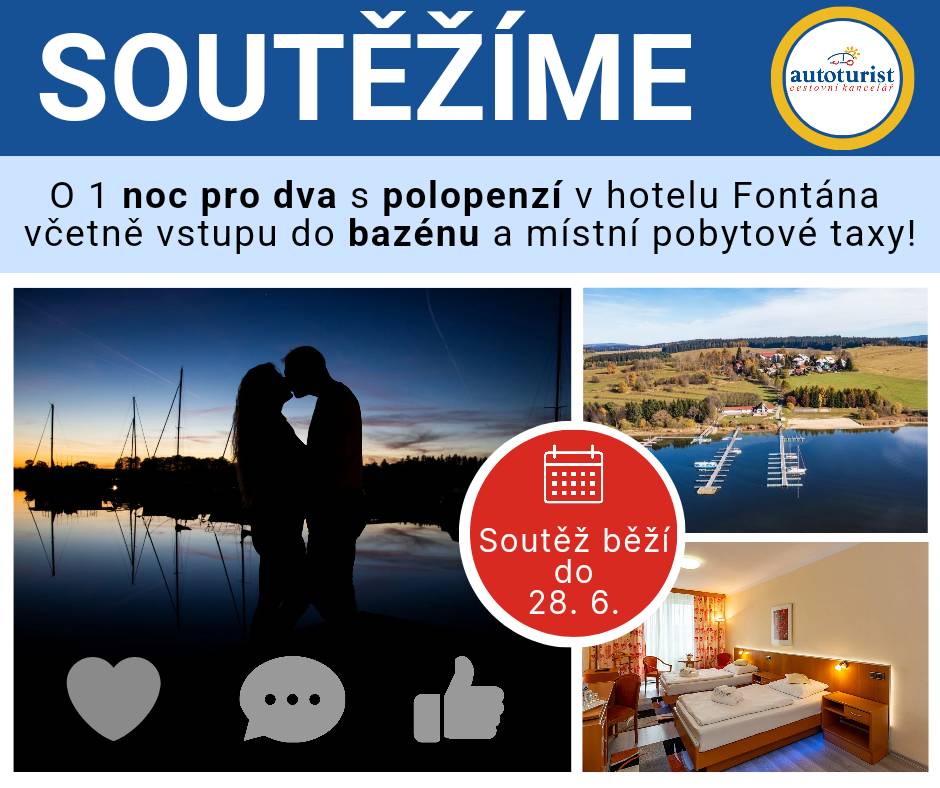 Už jste fanoušky našich stránek na Facebooku? Přidejte se k nám a získejte možnost vyhrát dvě noci s polopenzí pro dvě osoby v hotelu Fontána, včetně vstupu do bazénu a pobytové taxy!