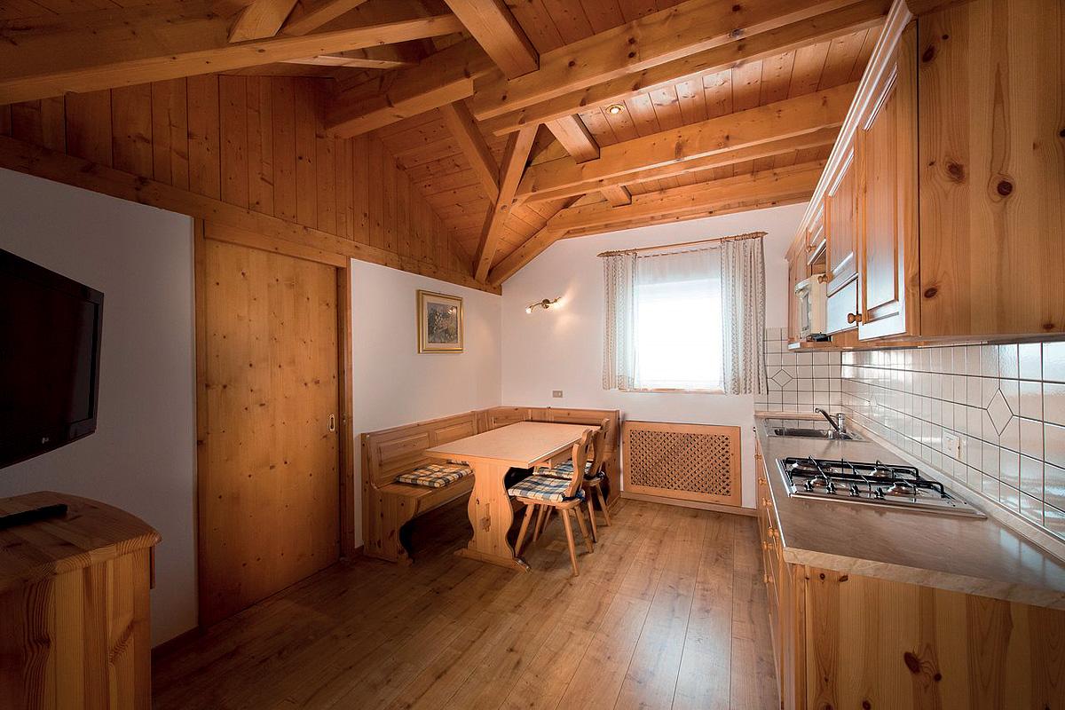 #trilo 4: 50 m² - 1 ložnice s manželskou postelí, 1 ložnice se 2 samostatnými lůžky, obývací pokoj s kuchyňským koutem a gaučem pro 1 osobu, sociální zařízení, balkon; 1 apartmán je situován v podkroví