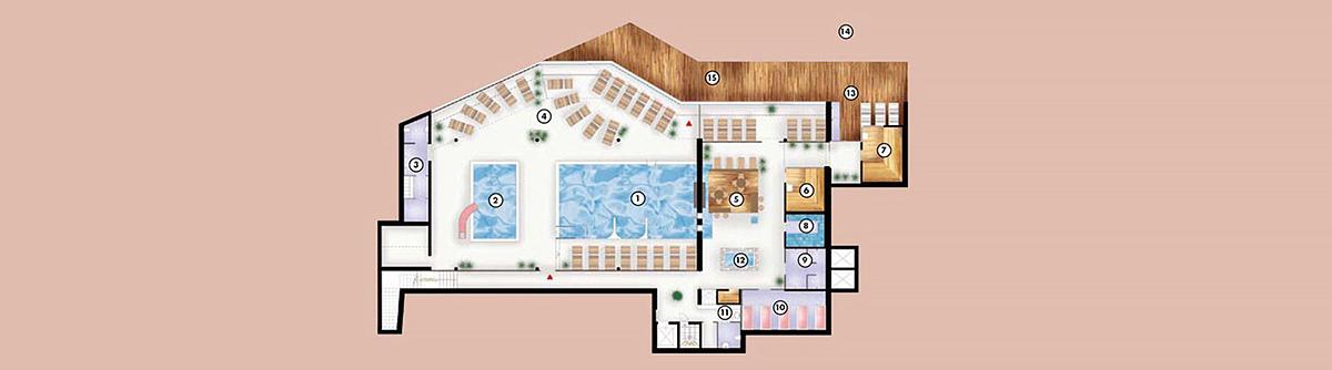 Dolomiti Panorama SPA (dvoupodlažní - 2000 m²), bazén s vířivkou a