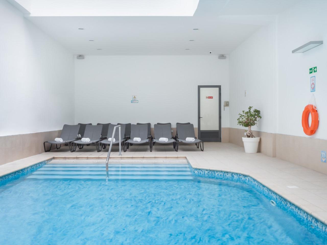 bazén, vnitřní bazén, lehátka a slunečníky u bazénů zdarma, terasu,
