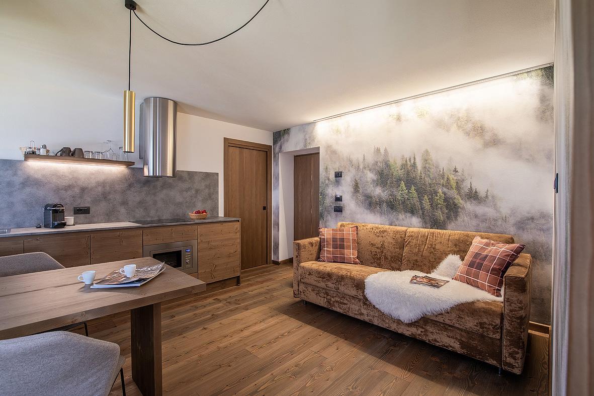 mono 4 Larice: 40 m² - obývací pokoj s kuchyňským