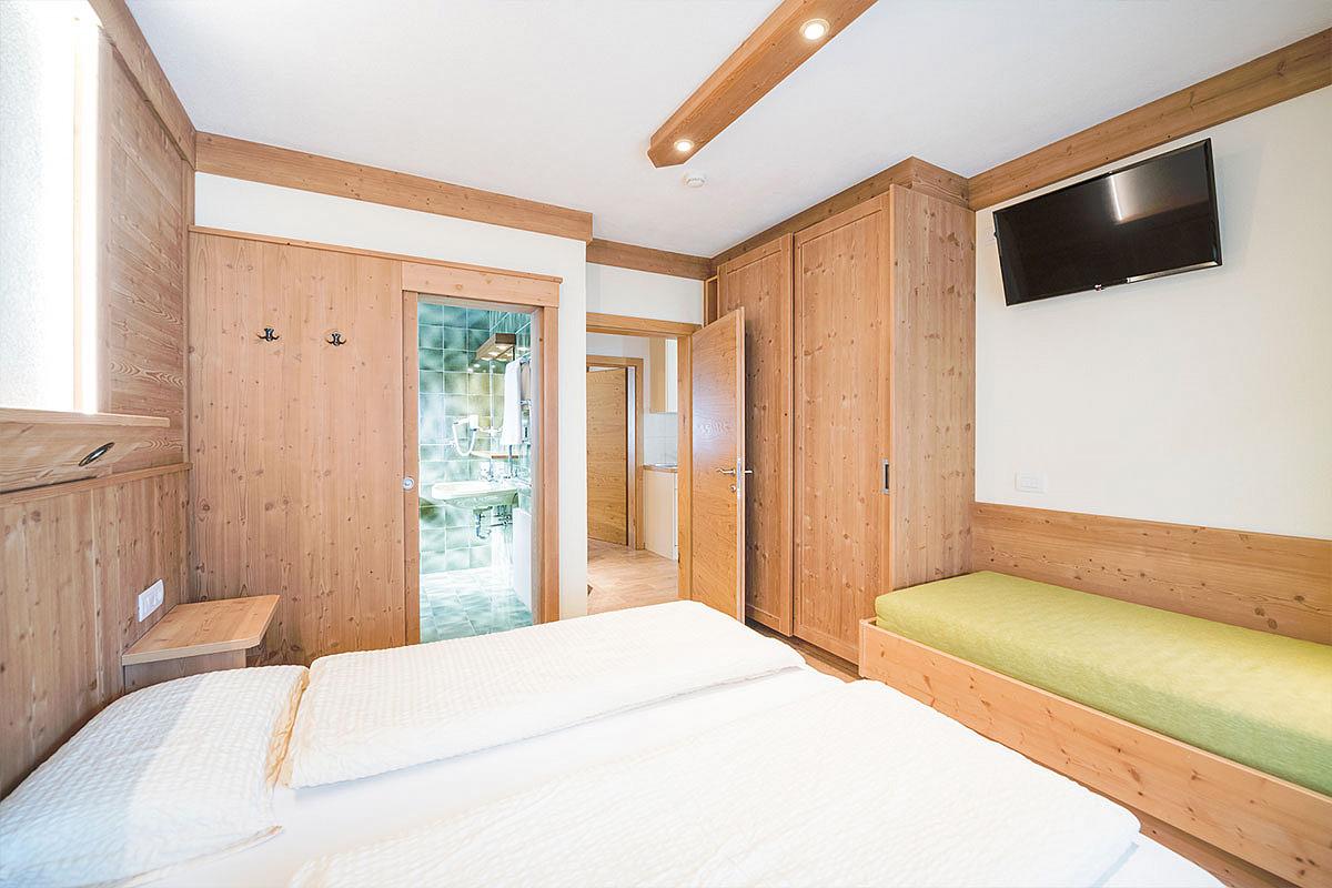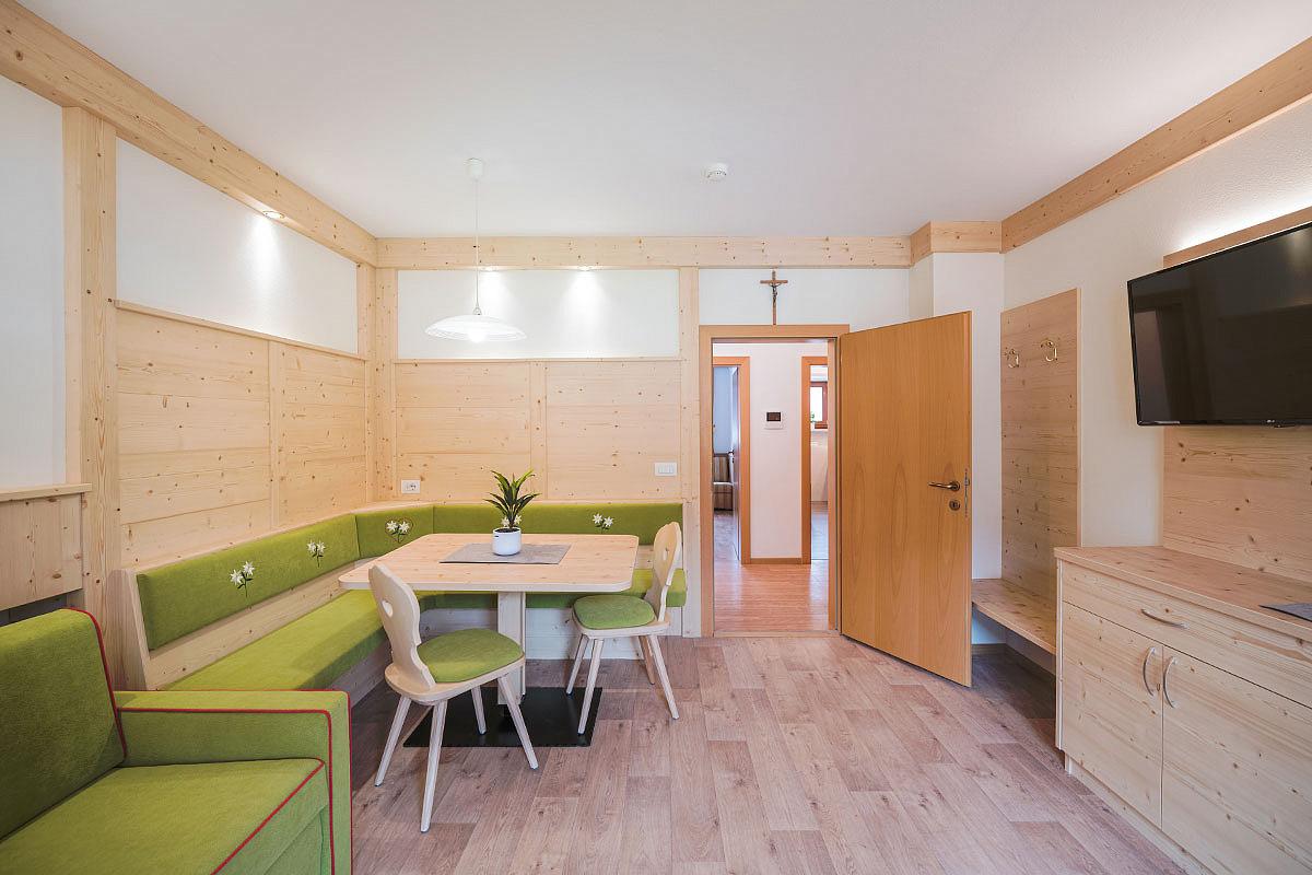 #trilo 5+1: 65 m² - 1 ložnice s manželskou postelí a 1 samostatným lůžkem, 1 ložnice s manželskou postelí, obývací pokoj s rozkládacím gaučem pro 1 osobu, samostatná kuchyňka či kuchyňský kout v rámci obývacího pokoje, 2x sociální zařízení, balkon; maximální obsazenost apartmánu je 5 dospělých osob a 1 dítě do nedovršených 14 let