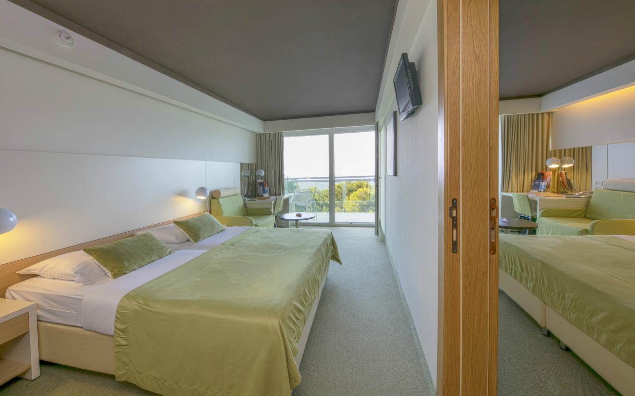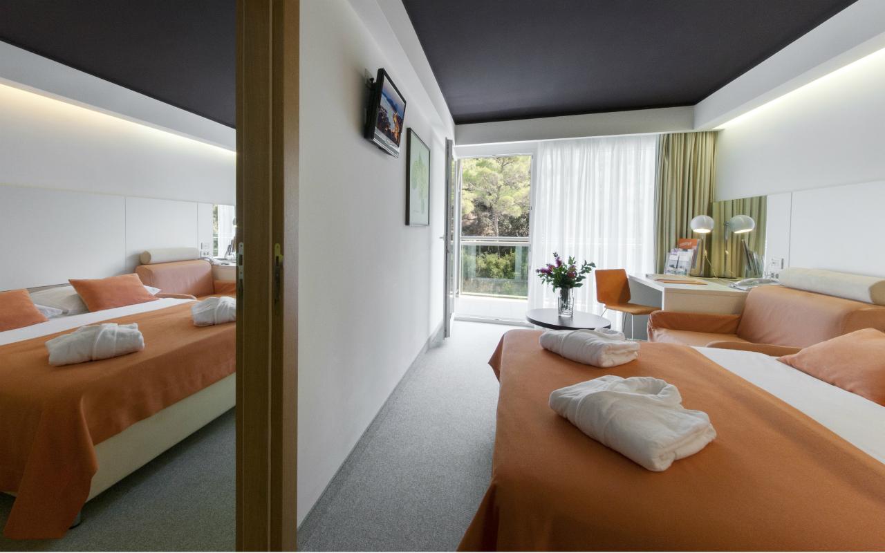 Rodinný pokoj 4(+2), balkon, moře - 40m2 - dva spojené dvoulůžkové pokoje se dvěma přistýlkami pro dvě děti do 12 let, orientace na mořskou stranu
