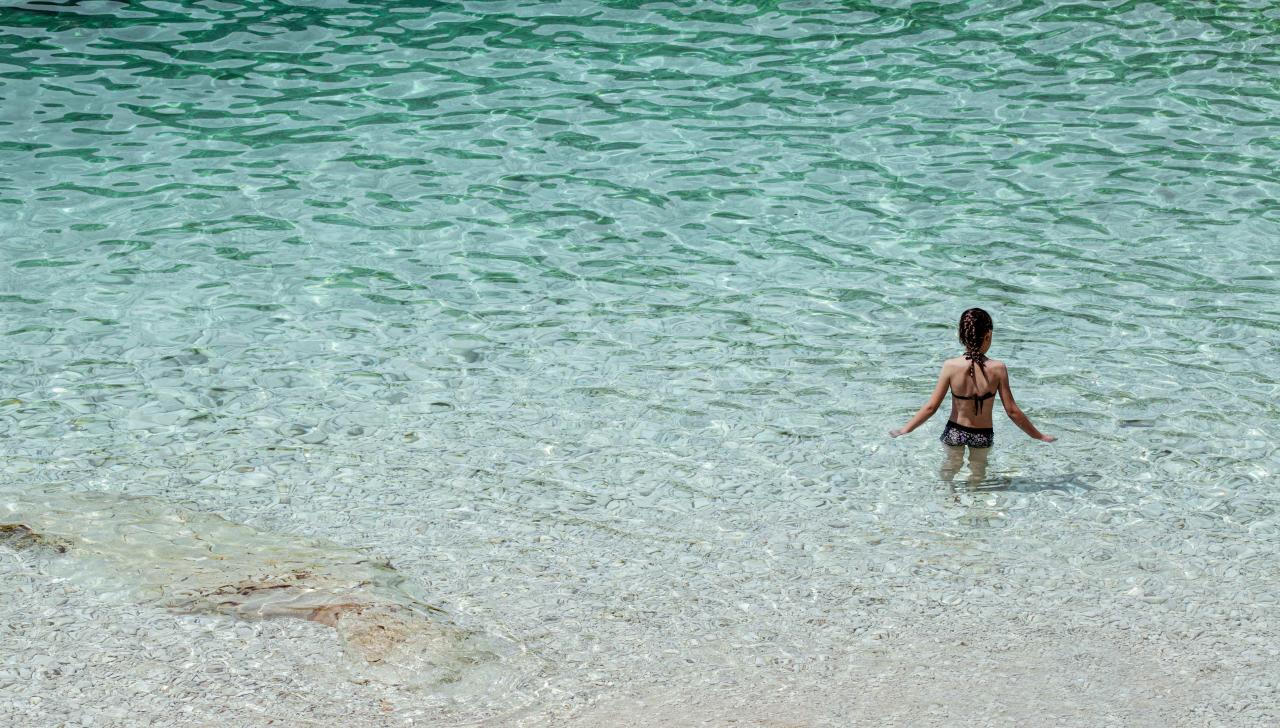 kamenitá, oblázková, cca 50 m, sprchy na pláži.