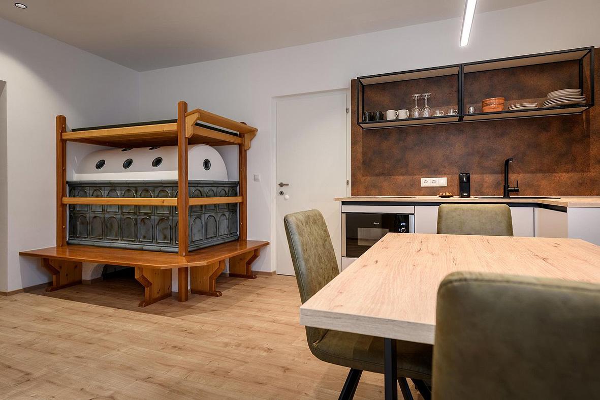 #mono 4 Sophie: 31 m² - obývací pokoj s kuchyňským koutem, manželskou postelí a rozkládacím gaučem pro 2 osoby, sociální zařízení