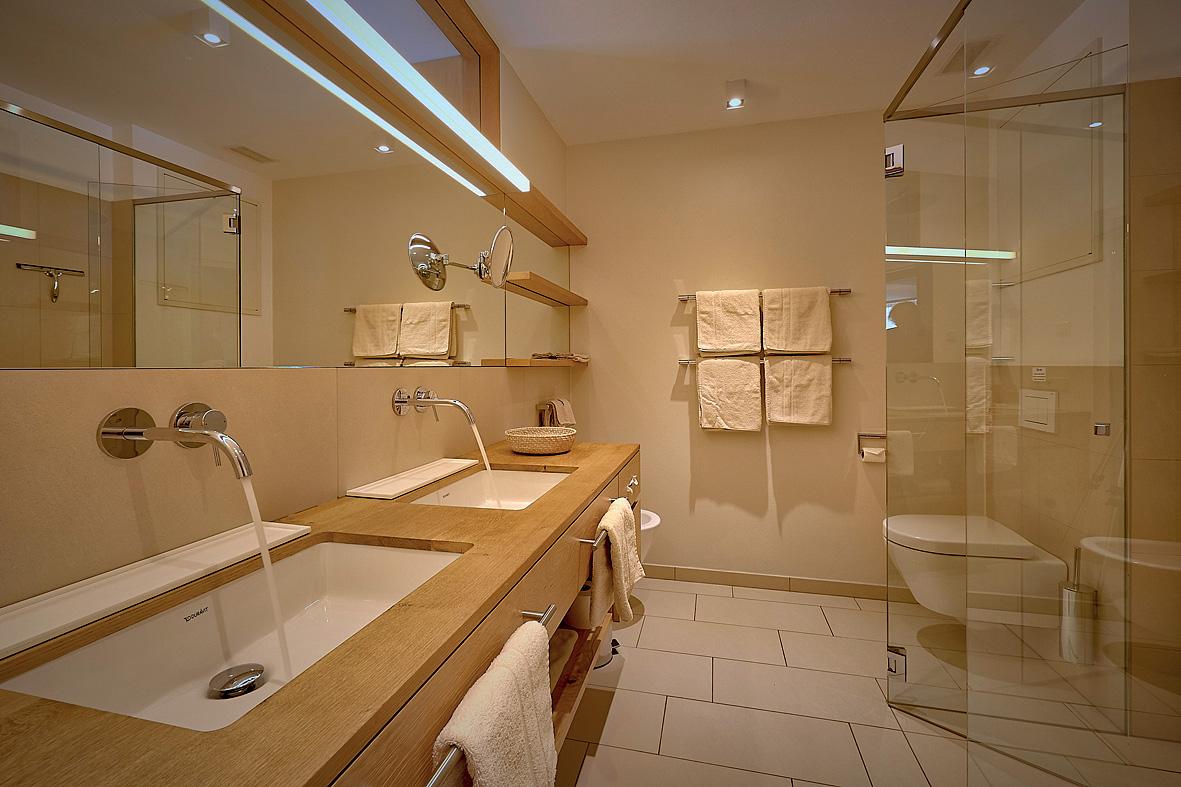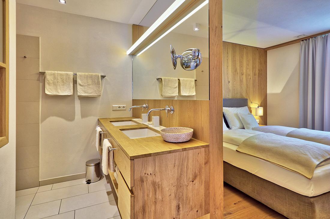 2 osoby, částečně oddělená sprcha a umyvadlo v rámci ložnice,