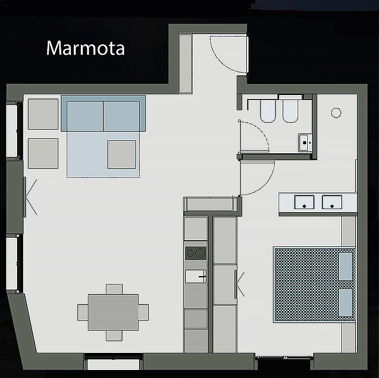 bilo 4 Marmota: 55 m² - 1 ložnice s manželskou