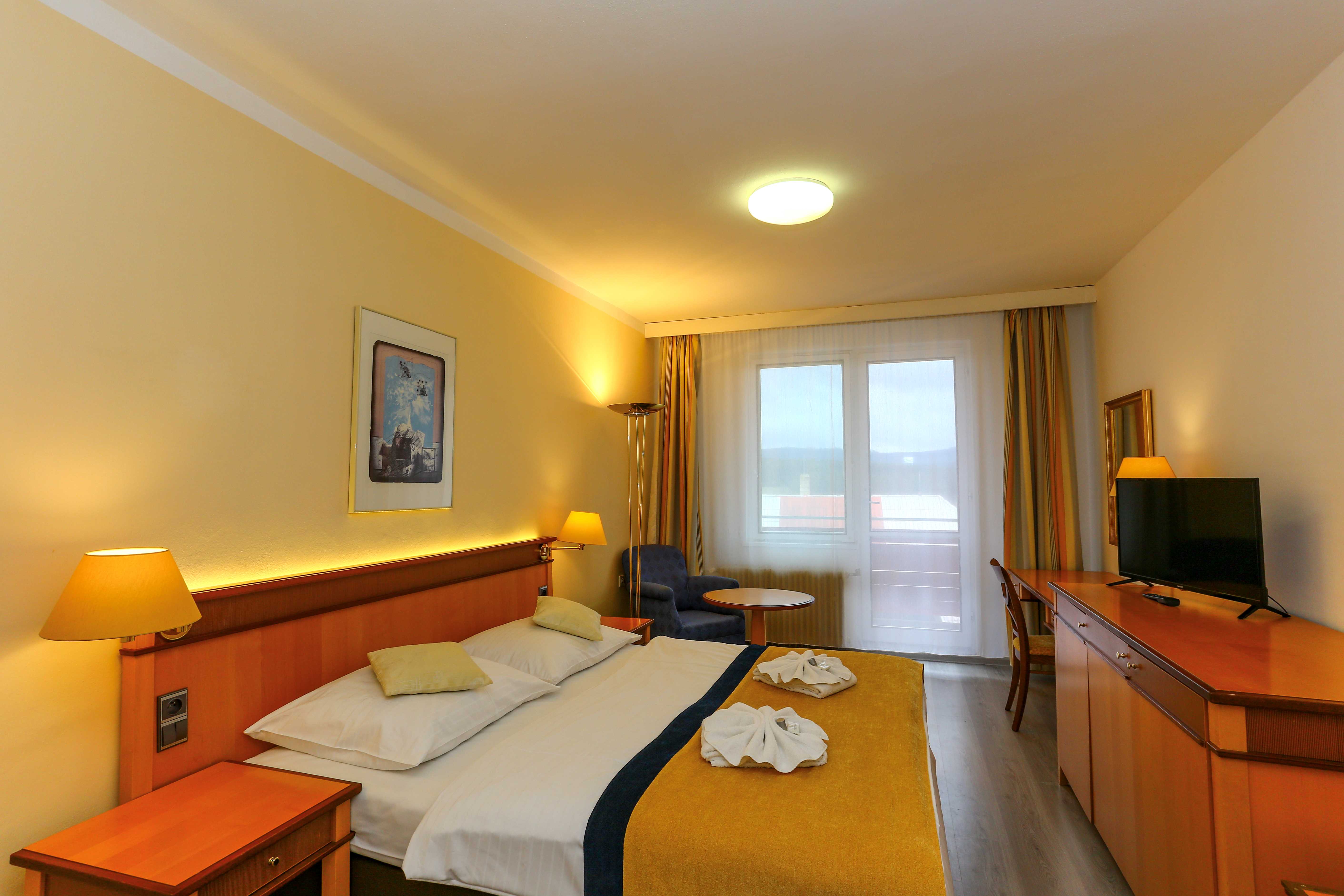 Hostům nabízíme ubytování ve 94 pohodlných a prostorných pokojích a 6 apartmánech s balkonem nebo terasou, LCD TV, chladničkou, rychlovarnou konvicí. Většina pokojů poskytují krásný výhled do jihočeské přírody.